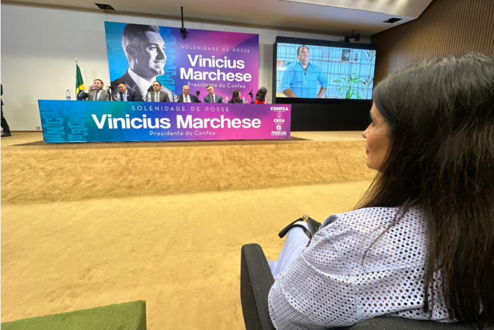 Em Brasília, a presidente do CREA-RS, Eng. Amb. Nanci Walter, prestigiou a posse solene do novo presidente do Confea na noite desta quarta-feira (21). A cerimônia ocorreu no Auditório Nereu Ramos, na Câmara dos Deputados, em Brasília, onde o Eng. Vinicius Marchese foi empossado como o novo presidente do Conselho Federal de Engenharia e Agronomia para o triênio 2024/2026.