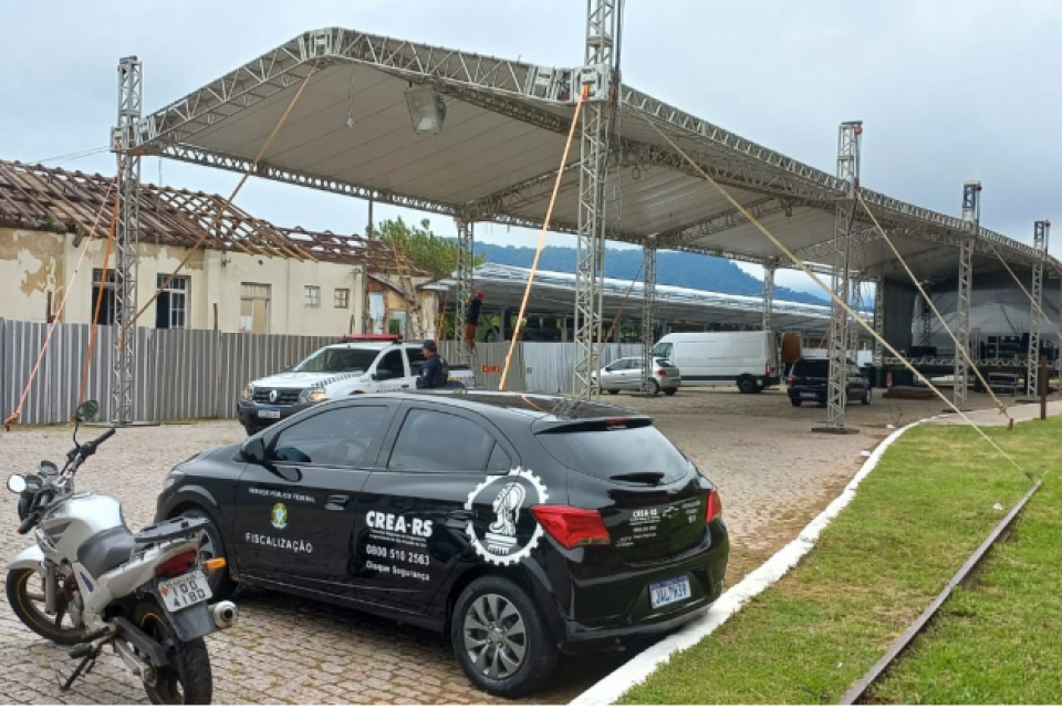 A estrutura montada no campus para receber o evento foi alvo de fiscalização do Conselho na última sexta-feira (08). A ação, conduzida pelo agente fiscal Luiz Batista Roggia, verificou as Anotações de Responsabilidade Técnica dos serviços executados, que devem estar sob a responsabilidade de profissionais e empresas legalmente habilitados.