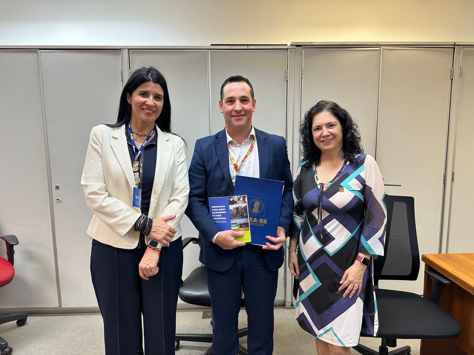 A convite da Secretaria de Habitação e Regularização Fundiária do Rio Grande do Sul (SEHAB), o CREA-RS e o Conselho Regional de Arquitetura e Urbanismo do RS (CAU/RS) participaram, na terça-feira (11/06), de uma reunião no Centro Administrativo de Contingência, em Porto Alegre. O encontro teve como objetivo discutir estratégias e diretrizes relacionadas ao Plano Rio Grande, iniciativa do Governo do Estado.