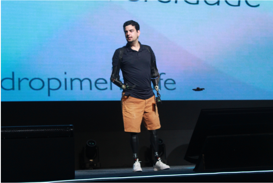 A história de Pedro Pimenta inspirou a plateia ao mostrar como a união entre engenharia, ciência e criatividade possibilitou o desenvolvimento das próteses que ele utiliza. Os dispositivos são integralmente mecânicos e passaram por diversas adaptações até chegarem ao formato atual. Isso só foi possível graças ao envolvimento de engenheiros de diferentes especialidades, que ajudaram a criar um produto funcional e esteticamente adaptado. "Em muitas vezes nossa capacidade emerge dos testes, quando saímos da zona de conforto. Tudo muda, o tempo todo", enfatizou.