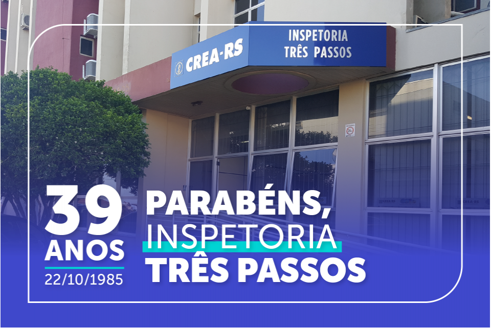Fundada em 22 de outubro de 1985, a Inspetoria do CREA-RS no município de Três Passos completa hoje 39 anos. Pertencente à Zonal Alto Uruguai, atende, além da cidade-sede, mais 21 localidades da região. Ao total são 734 os profissionais sob sua jurisdição.
