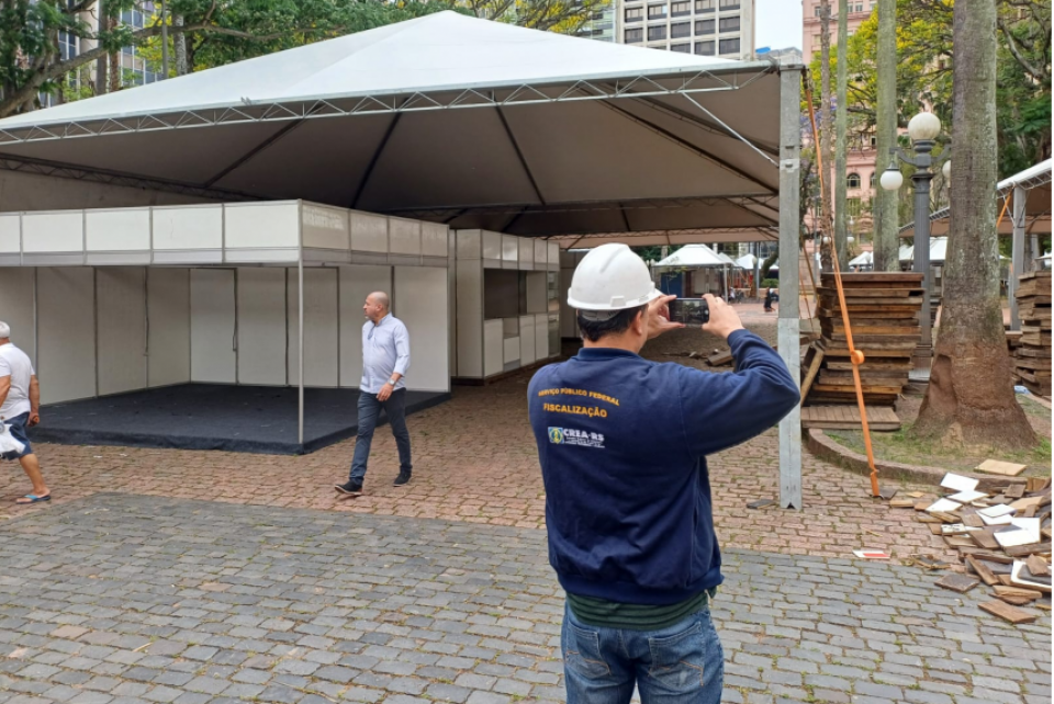 Para que a montagem das estruturas seja feita com a responsabilidade técnica de profissionais do Sistema Confea/Crea, garantindo toda a infraestrutura necessária para a segurança do público que circula pelo espaço, a fiscalização do CREA-RS esteve no local nesta quinta-feira (24).