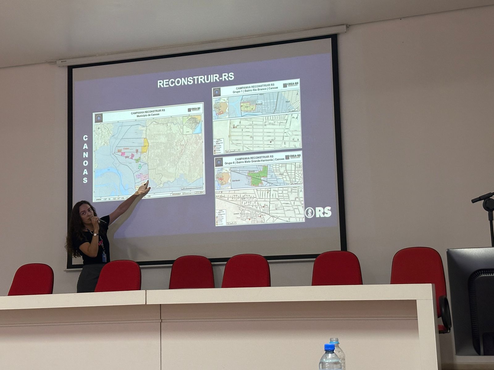 Falou, ainda, sobre a atuação no Reconstruir-RS, com os mapas produzidos para a realização do trabalho de campo das equipes de voluntários, que gerou mais de 700 laudos técnicos. “Estes mapas ajudaram muito na logística, e não precisamos fazer nenhuma técnica diferenciada, simplesmente utilizamos o conhecimento que trazemos da faculdade, que desenvolvemos nos estágios, e conseguimos organizar para o pessoal ter um trabalho mais eficaz e efetivo. Foi muito gratificante poder contribuir e entender que o profissional do georreferenciamento é muito fundamental quando ele faz este tipo de trabalho”, destacou.