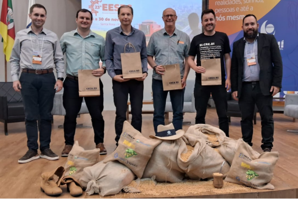 Encerrando o segundo dia do 23º Encontro Estadual das Entidades de Classe (EESEC), o potencial do agronegócio para o desenvolvimento social e econômico do Rio Grande do Sul e do país foi tema de mesa-redonda com o Gerente Financeiro e de Commodities Cotrirosa, Evandro Zemolin; o diretor de commodities Câmera Agroindustrial, Júnior Almeida da Rosa; e o Gerente Regional de desenvolvimento do Sicredi União RS/ES, Guilherme Cancian. A medicação foi do Eng. Agr. Jerson Spohr.