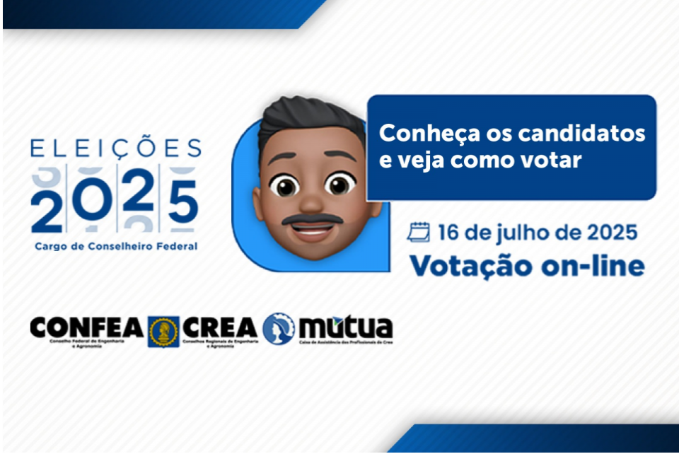 Neste exercício, serão escolhidos os novos Conselheiros Federais representantes das modalidades profissionais de Engenharia, Agronomia e Geociências para o mandato de 1º de janeiro de 2026 a 31 de dezembro de 2028. Para participar serão considerados aptos ao voto os profissionais registrados e em dia com suas obrigações no Sistema Confea/Crea até o dia 16 de junho de 2025.