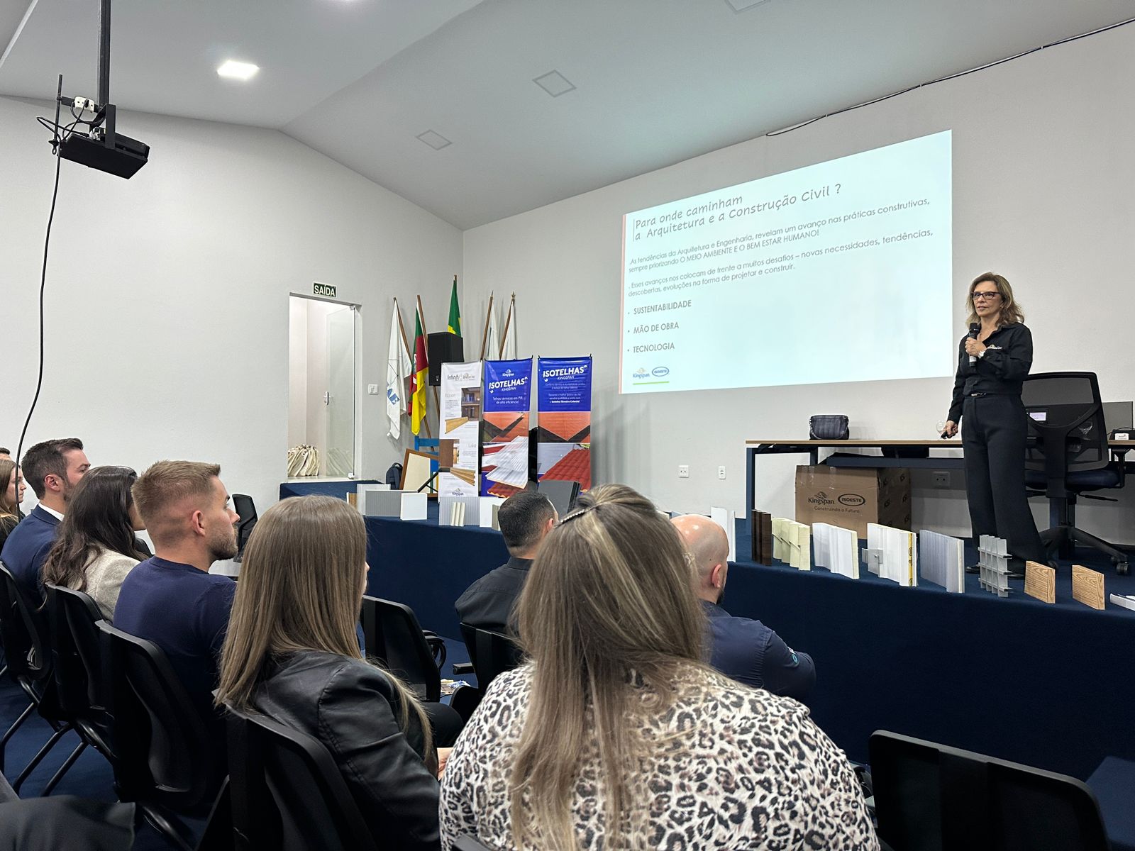 A palestra da noite foi conduzida pela empresa Kingspan, que apresentou soluções inovadoras para o mercado da construção civil.