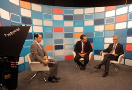 Durante o programa de TV, Paulo Meyer (centro) e José Baracuhy (à dir.) afirmam que não há escassez generalizada de engenheiros. Créditos: Arquivo Confea