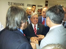 Presidente da Anseaf, Roberto Senno; presidente do Confea, José Tadeu; e senador Romero Jucá. Créditos: Arquivo Confea