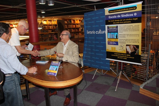 Cerca de 20 pessoas acompanharam a palestra do administrador Vanderlei Aragão Rocha no lançamento do seu livro Síndico Legal – Nova Abordagem da Gestão Condominial, sábado (23), às 17h, na Livraria Cultura do Shopping Bourboun Country, também prestigiada pelo presidente do CREA-RS, Eng. Luiz Alcides Capoani, responsável pelo prefácio da obra.