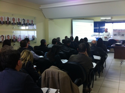 Nesta sexta (12) e sábado (13), mais de 30 profissionais participam do curso de atualização na área de Projeto de Prevenção e Proteção contra Incêndio, com o palestrante Eng. Civil e de Seg. Trab. Carlos Wengrover. O Núcleo de Engenheiros e Arquitetos de Bagé está promovendo este curso em comemoração aos 46 anos da entidade. O Eng. Civil e de Seg. Trab. Márcio Marun, atual presidente do NEAB, comemora o sucesso de público e informa que já está em fase de organização o próximo curso de Inspeção e Manutenção Predial, haja vista que o município de Bagé já possui legislação municipal em vigor.