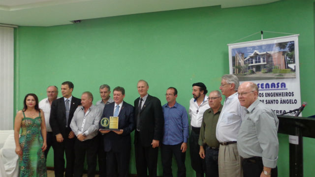 No último sábado (08), a Sociedade de Engenheiros e Arquitetos de Santo Ângelo (Senasa) realizou uma comemoração junto aos profissionais da região alusiva ao Dia do Engenheiro, que contou com a presença do presidente do CREA-RS, Eng. Civil Luiz Alcides Capoani. Na ocasião, a diretoria da entidade, contando com a presença dos Inspetores, fez uma homenagem ao Eng. Capoani por sua gestão à frente do Conselho, que teve sua trajetória contada por repentistas.