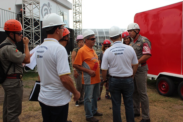 Também presente ao local, o Corpo de Bombeiros verificou os itens de segurança do local. De acordo com o major do Corpo de Bombeiros, Richard Oliveira Menezes, a ação é realizado em duas etapas: na análise do projeto apresentado e, na visita in loco, na averiguação da instalação dos sistemas projetados. “Hoje estamos verificando aqui que a grande maioria dos itens exigidos estão muito bem instalados”, destacou. De acordo com o Major, que inspeciona há três anos o evento, a preocupação com a segurança evoluiu bastante. “Principalmente na questão de saídas de emergência que é nossa principal preocupação, em uma possível evacuação. Estão muito bem montadas”, afirmou. Ressaltou, também, o apoio do CREA-RS. “Toda a documentação que exigimos, principalmente os laudos, são trabalhos técnicos, e tem de vir acompanhados de uma ART. Então o CREA-RS nos auxilia nesse sentido, ele fiscaliza essa documentação nos dando um apoio técnico nessa área.”