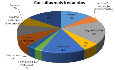 Em 2014 foram registradas 1100 manifestações. Quanto aos usuários, a maioria são profissionais e empresas registrados (63%). Em relação ao tipo de demanda, as Consultas são as mais frequentes, somando 42%. Destas, a maioria são sobre procedimentos para registro de Pessoa Física, Jurídica e Instituições de Ensino (18%), seguida pelas informações sobre atribuição (14%) e anuidade (14%). Sobre as reclamações, a demora no atendimento dos expedientes são as mais preocupantes: demora da emissão da carteira (24%), demora de relato de processo (16%) e demora de registro de atestado (11%) entre outros. Consequentemente, os pedidos de agilização de processo, agilização de registro de atestado, juntos, somam 30% das solicitações. Abaixo os gráficos para melhor entendimento.