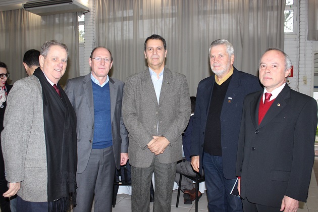 Da esq.: Sebenello, prefeito Luiz Lauermann, Eng. Melvis, profissional convidado e Eng. Burille. Créditos: Arquivo CREA-RS