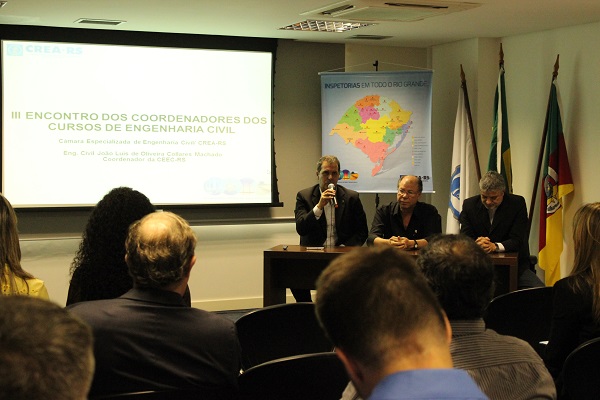 Coordenadores dos cursos de Engenharia Civil de todo o Estado estiveram presentes, na tarde desta terça-feira (03), no primeiro encontro realizado, neste ano, pelo CREA-RS para debater o presente e o futuro do ensino de Engenharia Civil.