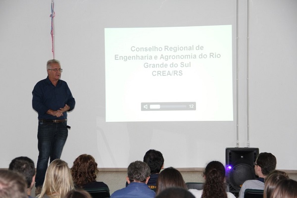 O inspetor-secretário da Inspetoria do Conselho Regional de Engenharia e Agronomia do Estado do Rio Grande do Sul (CREA-RS) em Erechim, Eng. Civil João Aleixo Brusch, esteve na Universidade Federal da Fronteira Sul - Campus Erechim, na última sexta-feira (4) quando palestrou para estudantes e docentes do curso de Engenharia Ambiental. Foram abordadas questões relacionadas às atribuições profissionais, exercício da profissão e sistema do Conselho Federal de Engenharia e Agronomia (Confea). A palestra foi organizada pela coordenação de estágios do curso.