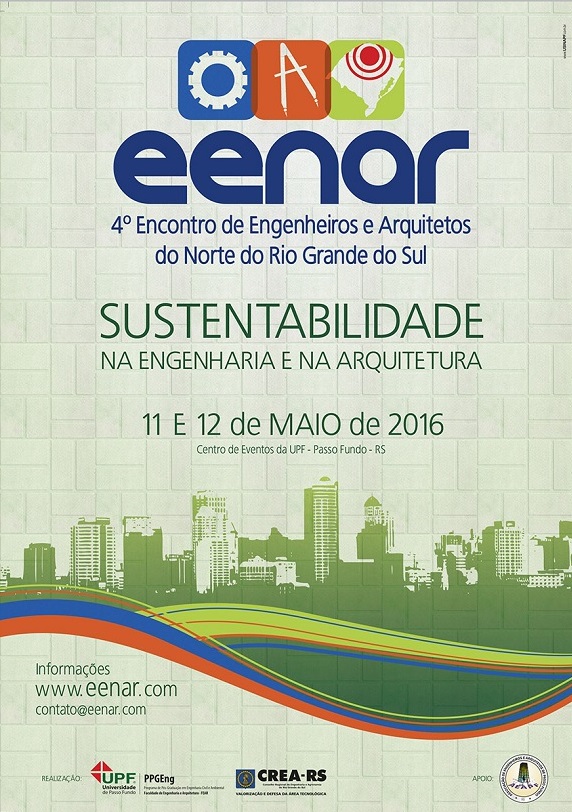 Já estão abertas as inscrições para o IV Encontro de Engenheiros e Arquitetos do Norte do RS (EENAR 2016), que terá como prioridade assuntos relacionados com a temática Sustentabilidade na Engenharia e Arquitetura. Este evento conta com o apoio do CREA-RS.