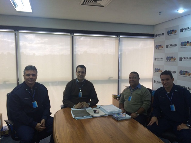 Representantes do Quinto Serviço Regional Investigação e Prevenção de Acidentes Aeronáuticos (SERIPA), da região sul do País, Capitão Marlon Da Fonseca Sampaio, Tenente Coronel Luiz Renato Horta de Castro e Milton Cardoso de Lima, estiveram reunidos com o presidente do CREA-RS, Eng. Civ. Melvis Barrios Junior, para apresentar questões técnicas referentes ao uso do espaço aéreo. Na ocasião, formalizaram pedido de apoio ao evento técnico que irão realizar, no segundo semestre, para tratar sobre manutenção e prevenção na área aeronáutica.