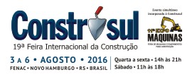Reforçando seu papel fundamental de alavancar os negócios na cadeia produtiva da construção civil, a 19ª Construsul – Feira Internacional da Construção será realizada de 3 a 6 de agosto, nos pavilhões da Fenac, em Novo Hamburgo, RS. Atendendo a pedidos, neste ano a Construsul terá horário diferenciado no sábado, das 11h às 18h. Nos demais dias, o horário permanece o tradicional, das 14h às 21h.
