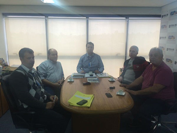 Os representantes do Sindicato dos Técnicos Industriais do Rio Grande do Sul (Sintec), diretor-presidente, Gerson Carlos Lima Vilar, e o ex-presidente, Ricardo Nerbas, acompanhados pelo vice-presidente do Sindicato dos Técnicos Agrícolas do RS (Sintargs), Carlos Dinarte Coelho, estiveram na sede do CREA-RS para uma visita ao presidente do Conselho, Eng. Civ. Melvis Barrios Junior, nesta segunda-feira (09). Também participou da reunião o assessor da presidência, Técnico Agrícola Jeferson Rosa.