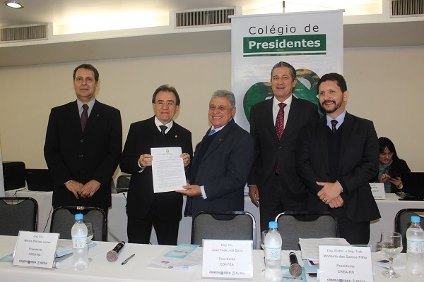 A 3ª Reunião Ordinária do Colégio de Presidentes, que ocorre desde a quarta-feira (15) em Porto Alegre (RS), iniciou seu segundo dia com informes de diversas comissões de trabalho do Sistema Confea/Crea e Mútua, decisões e apresentações de projetos que estão em andamento em diversos Estados. Além disso, o presidente do Confea, José Tadeu, assinou a Resolução nº 1074, que aprova a norma geral para elaboração de regimento dos Creas.