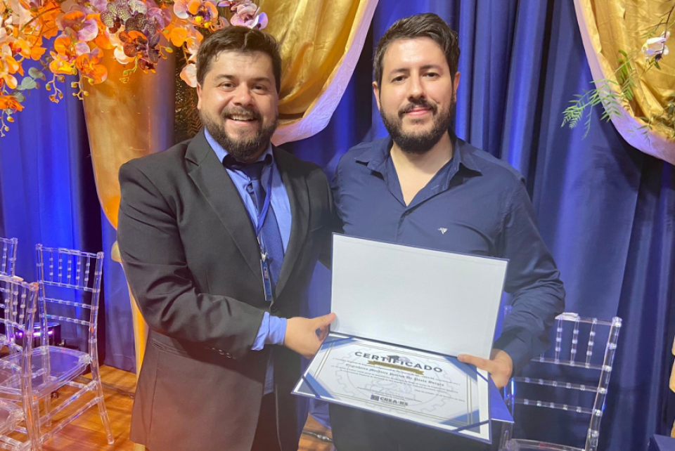 No dia 25 foi a vez do Engenheiro Mecânico Patrick de Paula Borges, que recebeu seu Mérito Acadêmico na colocação de grau da turma de Engenharia Mecânica da Unijuí pelas mãos do inspetor-secretário de Ijuí, Engenheiro Mecânico Jhonatan Alves Machado.