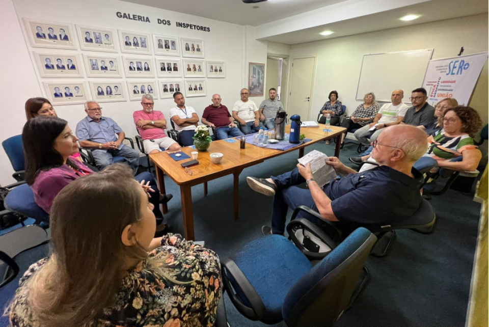 Com objetivo de discutir questões relacionadas à fiscalização e ao estreitamento de laços com os inspetores de Novo Hamburgo, a Associação de Arquitetos e Engenheiros de Novo Hamburgo (Asaec) realizou, na noite desta quinta-feira (30), um encontro na Inspetoria local, na presença da presidente do Conselho, Eng. Amb. Nanci Walter, de inspetores e da diretoria da entidade de classe.