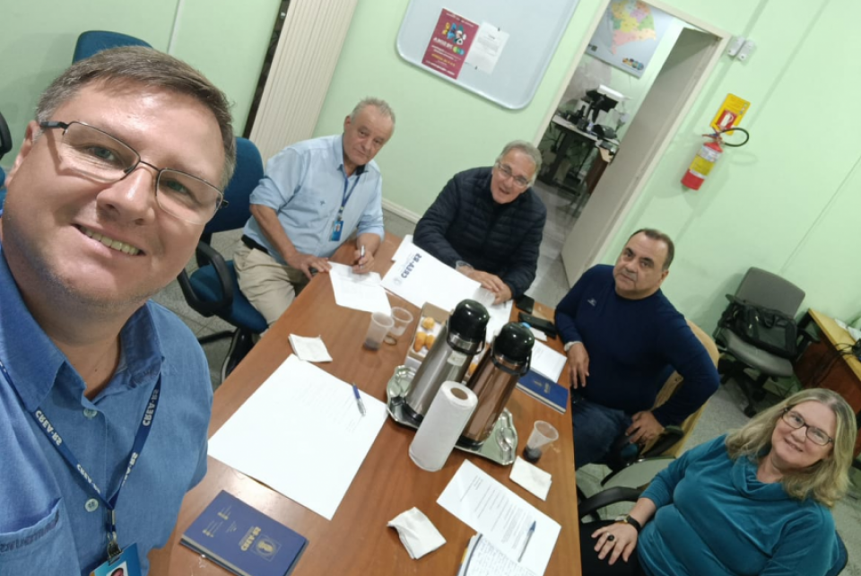 A Zonal Fronteira Oeste realizou sua terceira reunião do ano nesta terça-feira (16) na Inspetoria de Santiago. Participaram inspetor-chefe de Santiago, Eng. Agr. Marcelo Gomes Steiner; inspetor-chefe de São Borja, Eng. Agr. Dejair José Tomazzi; o inspetor-chefe de São Luiz Gonzaga, Eng. Civil Miguel Cattelan Filho; o representante da Zonal, Eng. Civil e Seg. Trab. Fernando Brasil Aquino dos Santos e a funcionária Ana Beatriz Legramante Martins.
