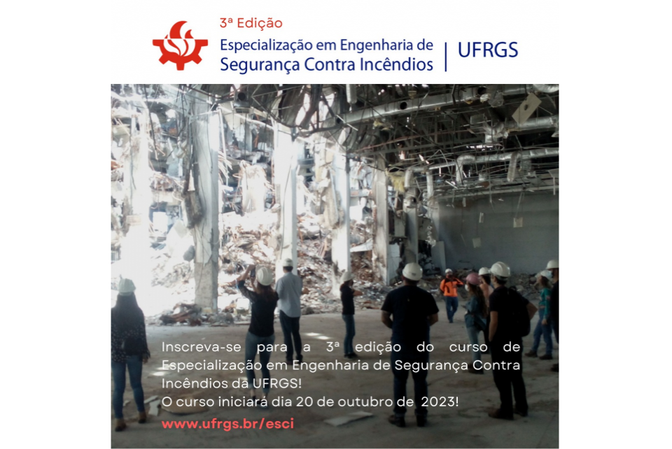 A UFRGS está com as inscrições abertas para a 3º edição para o curso de Especialização Engenharia de Segurança Contra Incêndios, onde o profissional ficará habilitado a projetar e implementar projetos e sistemas de Engenharia de Segurança Contra Incêndios em edificações, bem como de dimensionar, verificar e investigar estruturas em situação de incêndio.