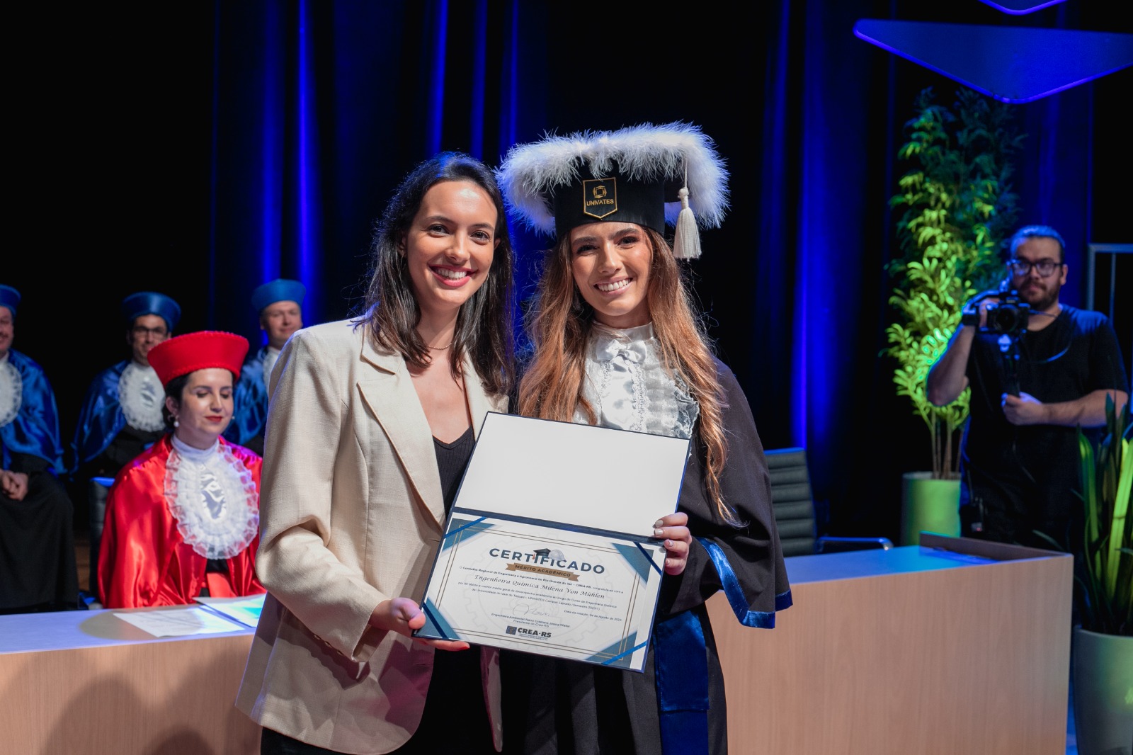 Desde 2021, o CREA-RS, por meio de seus inspetores, conselheiros e diretores, homenageia os alunos que se destacam em suas turmas com as melhores médias nos cursos das Engenharias, Agronomia e Geociências de universidades e faculdades de todo o Rio Grande do Sul. A entrega é feita no ato da cerimônia de formatura ou, na impossibilidade, nas Inspetorias do Conselho.