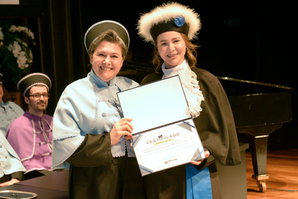 Dona da melhor média da turma de Design de Interiores, Liliam Bittencourt Filipi, recebeu, por seu desempenho, o Certificado de Mérito Acadêmico do CREA-RS.