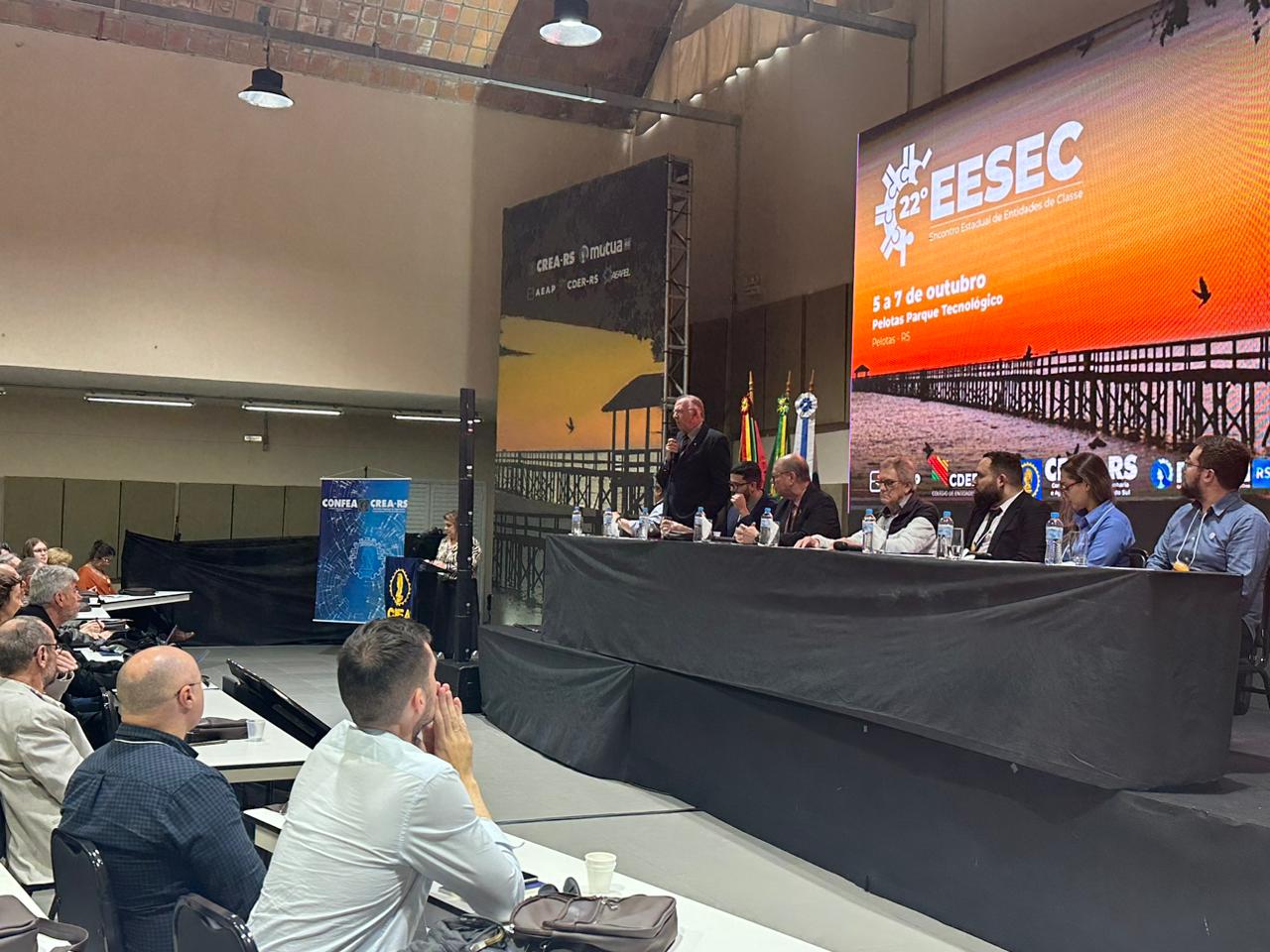 Representantes das mais de 70 entidades de classe que englobam os profissionais das áreas das Engenharias, Agronomia e Geociências de todo o Estado estão reunidos no Pelotas Parque Tecnológico no 22º Encontro Estadual de Entidades de Classe (EESEC), aberto na tarde desta quinta-feira (05).