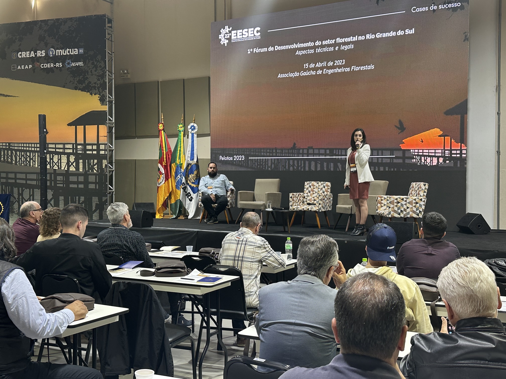 O case, apresentando trata do evento realizada pelo Associação Gaúcha dos Engenheiros Florestais que tratou, principalmente, do zoneamento da silvicultura no Estado, entre outros temas Engenharia Florestal, setor responsável por um quarto das exportações do país pela indústria moveleira.