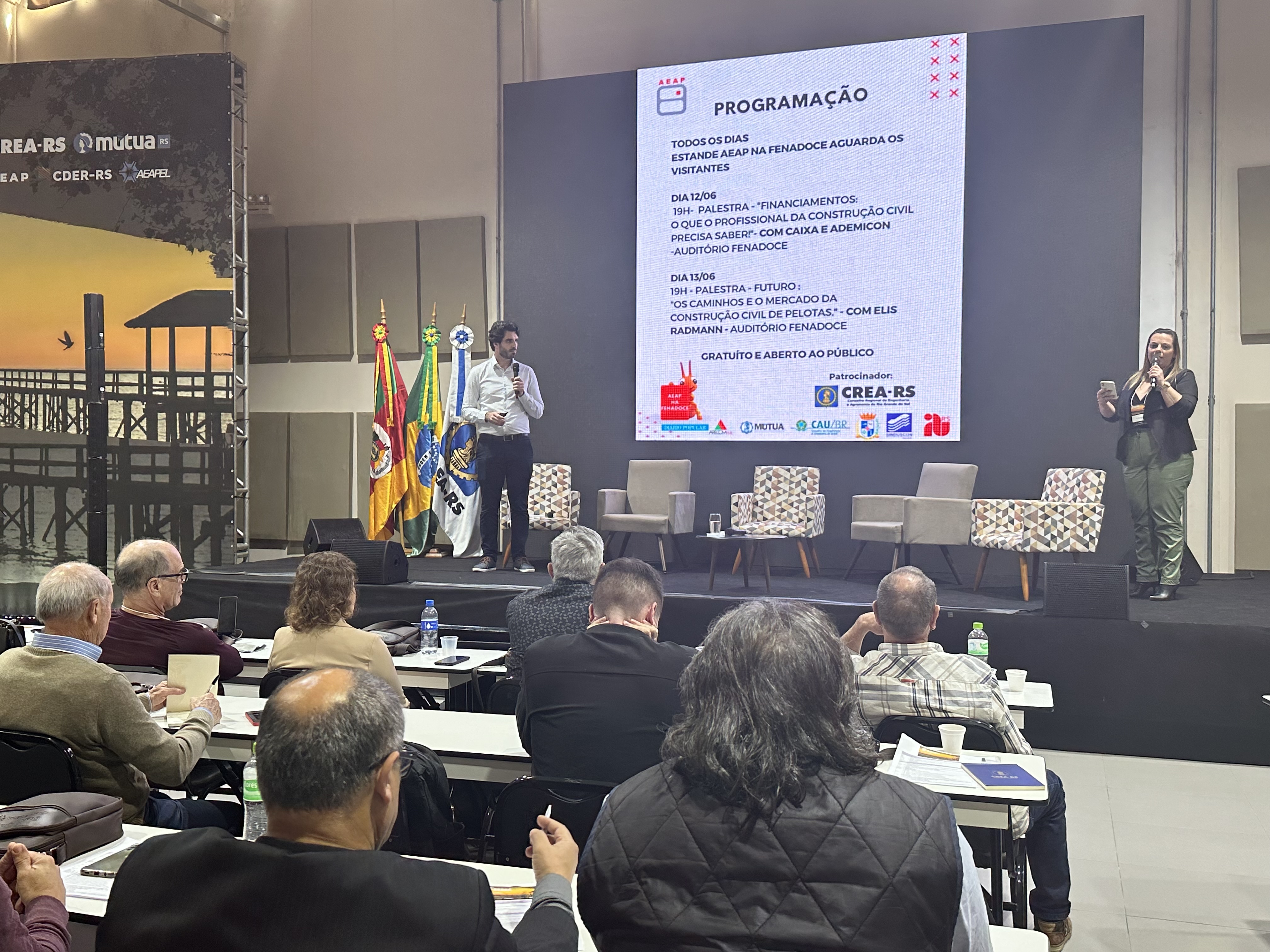 As diversas ações da Associação dos Engenheiros e Arquitetos de Pelotas durante a Fenadoce, onde mantém estande institucional, além de promover palestras e lives durante a feira, que colaboram com o aumento do número de associados durante este período.