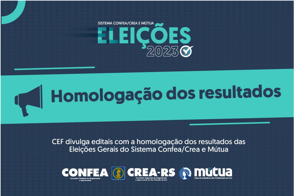 Em cumprimento ao Calendário Eleitoral aprovado pela Decisão Plenária nº 1869/2023, a CEF publicou o Edital Eleitoral 18/12/2023, tornando público o Resultado das Eleições Gerais do Sistema Confea/Crea e Mútua 2023, que ocorreu no dia 17 de novembro, homologado pelo Plenário do Confea, elegendo aqui no Rio Grande do Sul a Eng. Ambiental Nanci Walter (reeleita), presidente do CREA-RS; a Eng. Agrônoma Andréa Brondani da Rocha, diretora-geral da Mútua-RS; o Eng. Civ. Gilmar Piovesan, diretor administrativo; e o Eng. Civ. Marcio Marun, diretor financeiro.