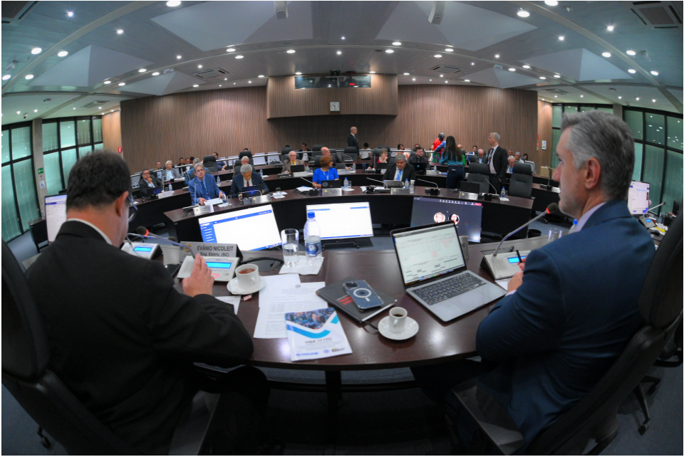 Vice-presidente Evânio Nicoleit e presidente Vinicius Marchese durante a primeira plenária do ano. Créditos: Yago Brito/Confea