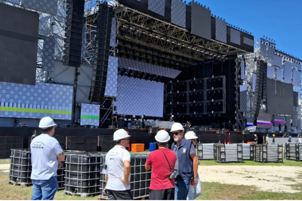 Explicou, ainda, que a equipe de fiscalização interna conta, ainda, com dois engenheiros eletricistas – responsáveis pela iluminação, sonorização e elétrica – e uma equipe de engenharia de segurança do trabalho que também atua do início ao fim dos trabalhos.