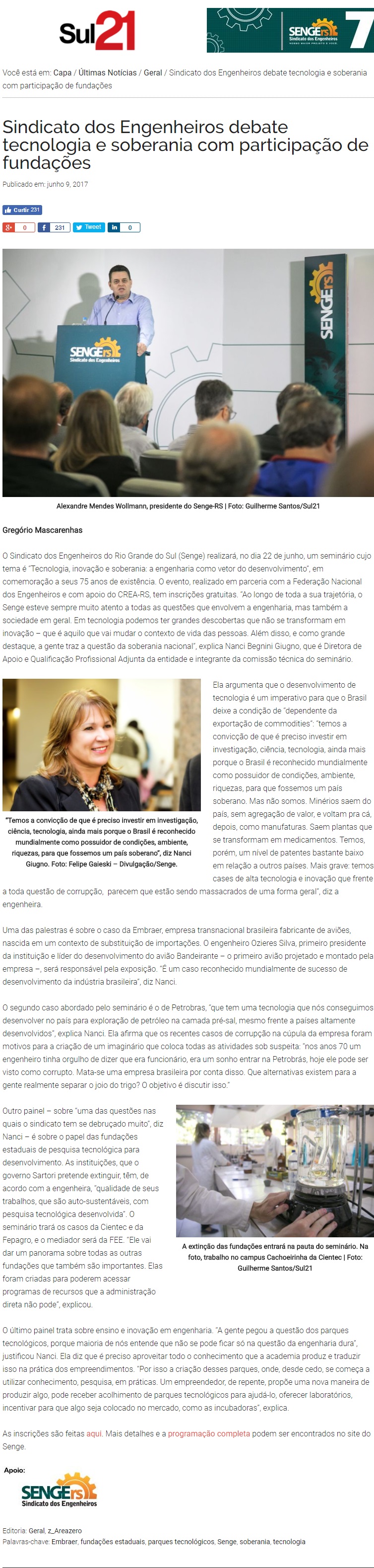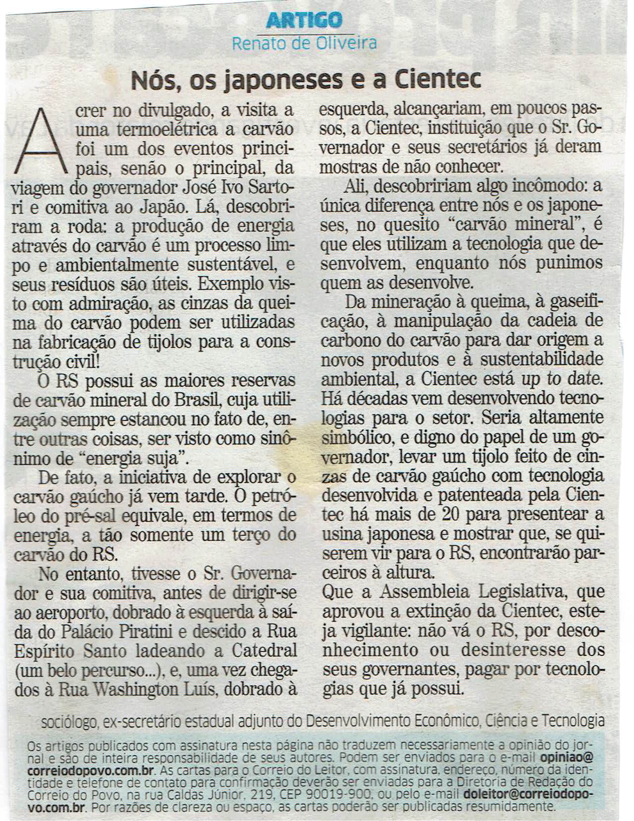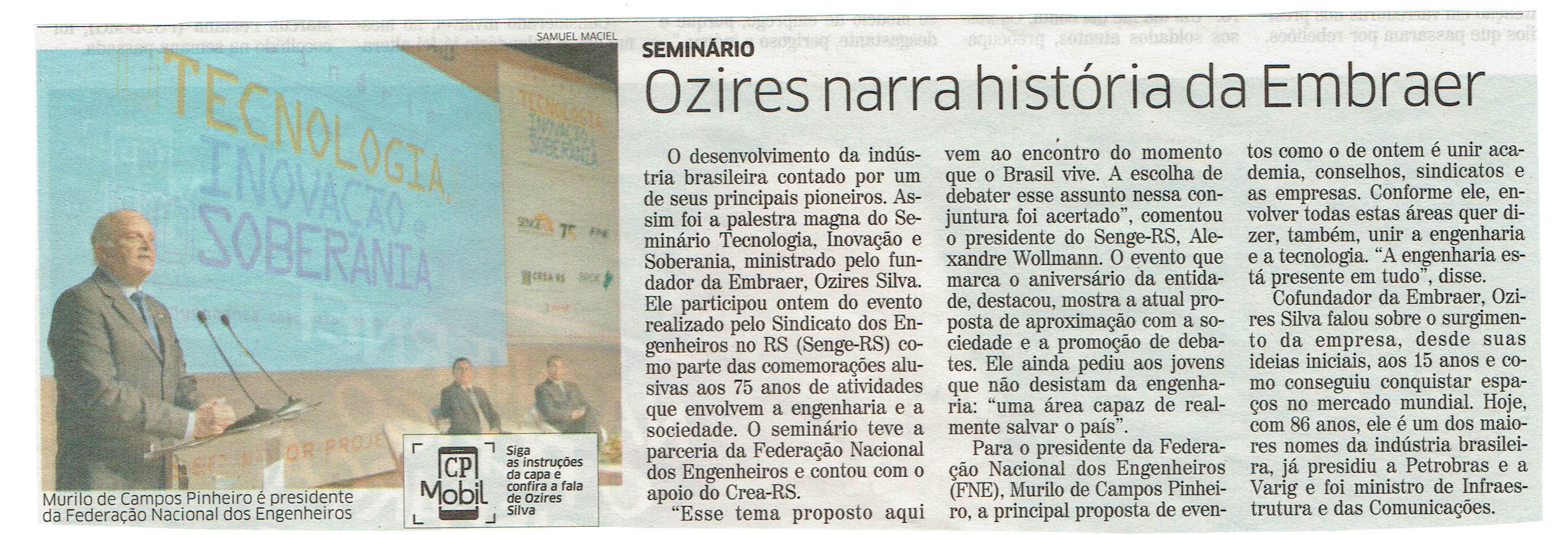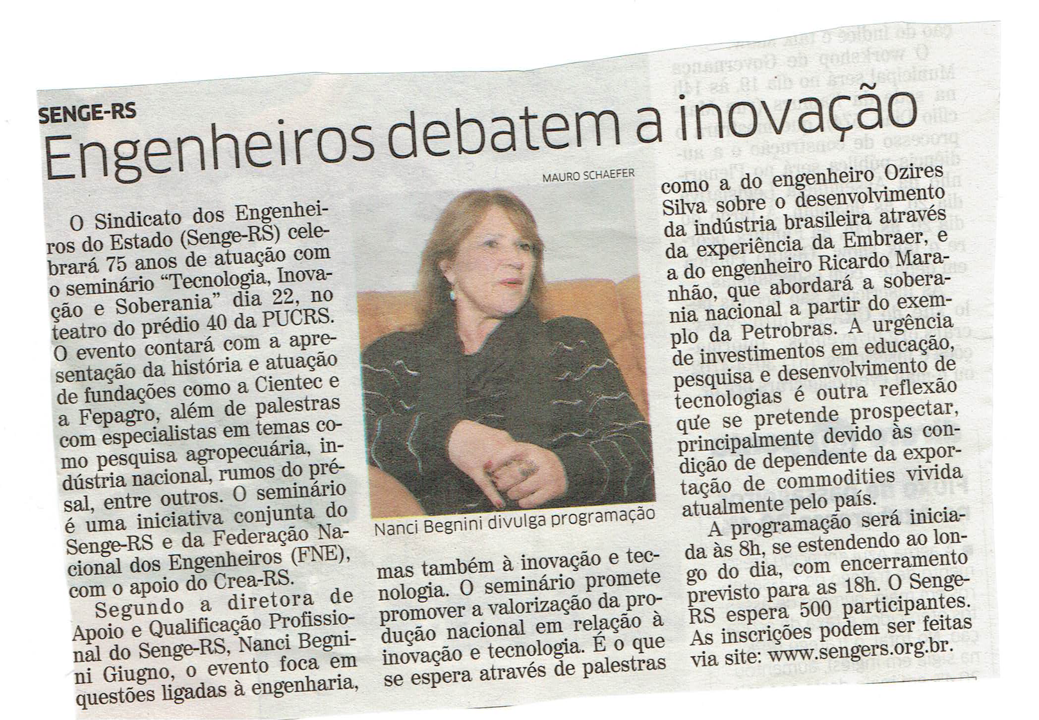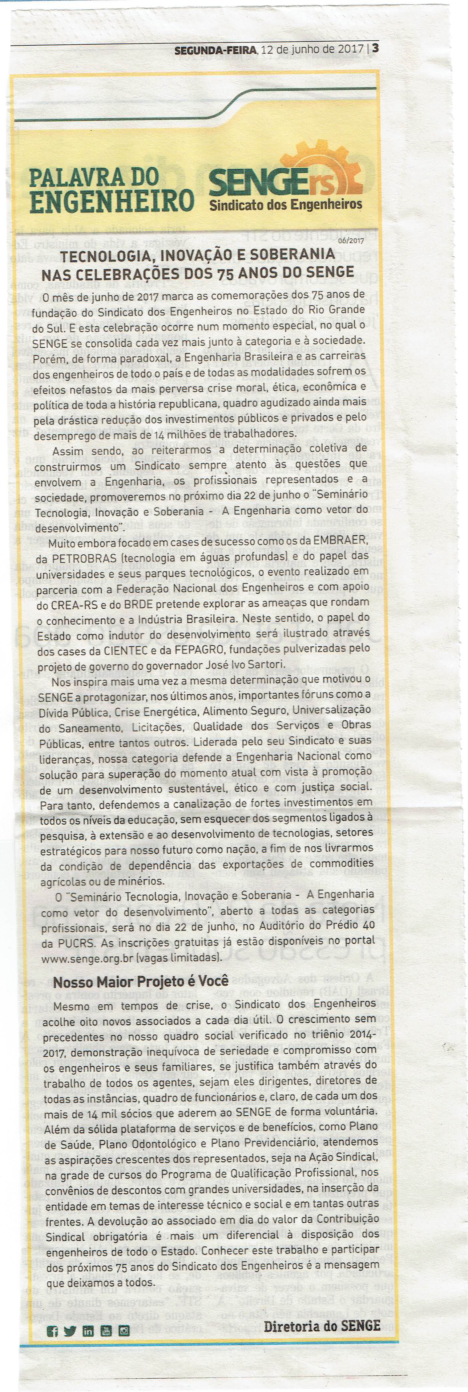 Na coluna do Senge RS, no jornal Correio do Povo.