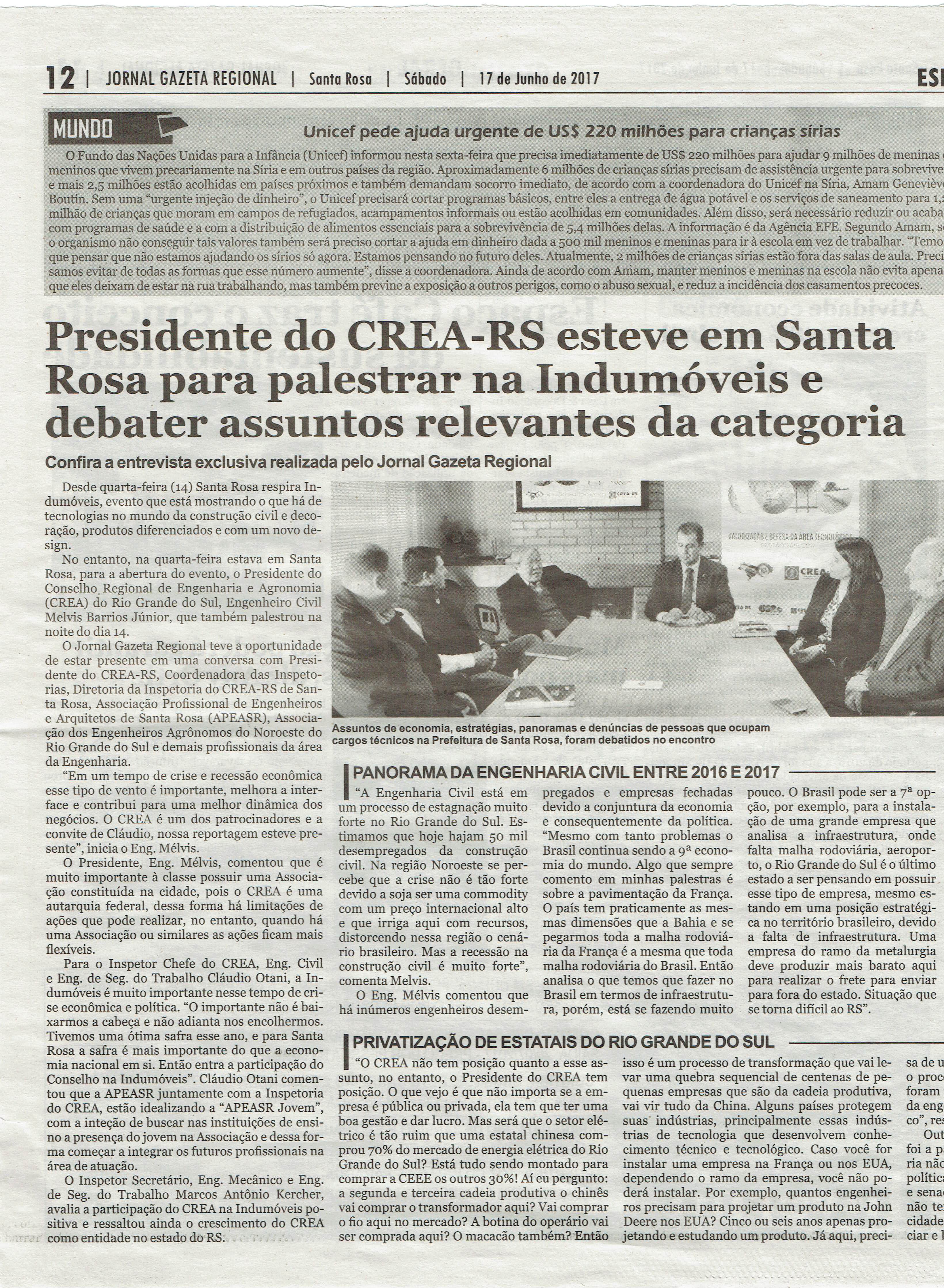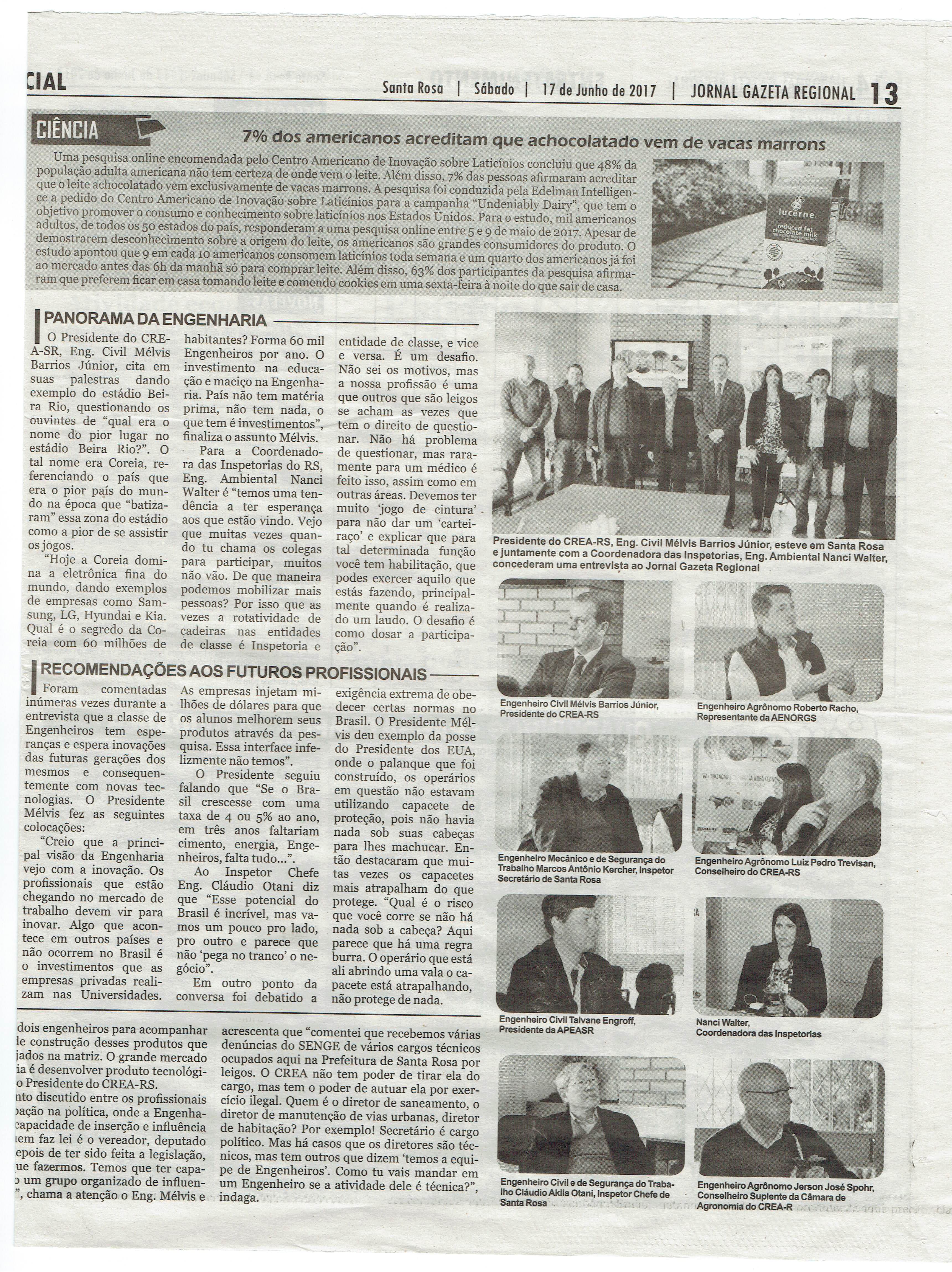 No Jornal Gazeta Regional, de Santa Rosa.