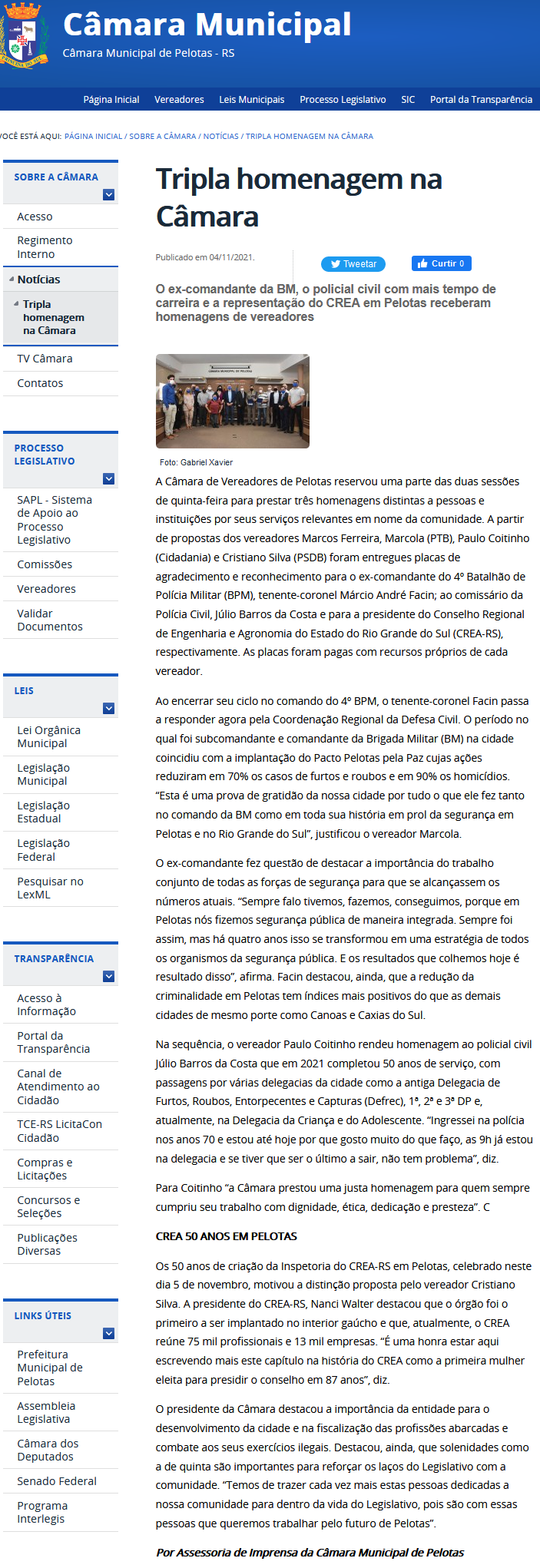 Site Câmara Vereadores de Pelotas